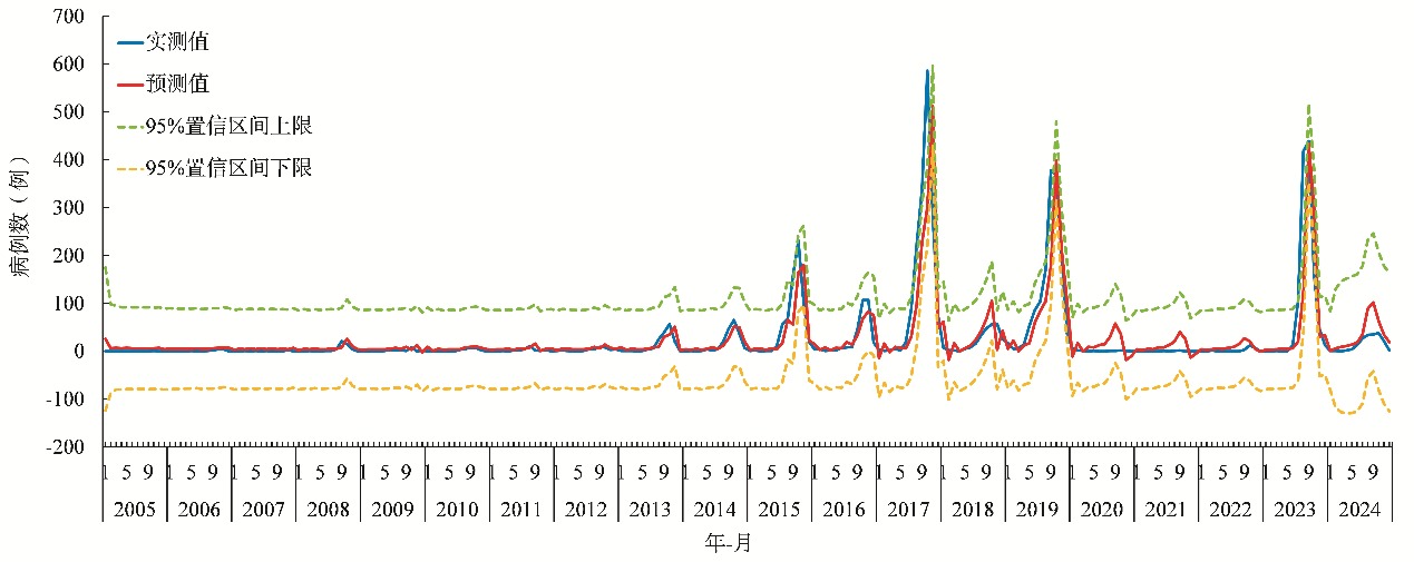 FU Jialu, ZHENG Erda, QI Yanbo, WU Linbo, HE Jibo, YANG Rui. Epidemiological characteristics and prediction of overseas imported dengue fever in Yunnan Province from 2005 to 2023[J]. Journal of Tropical Diseases and Parasitology, 2025, 23(4): 199-204,210.