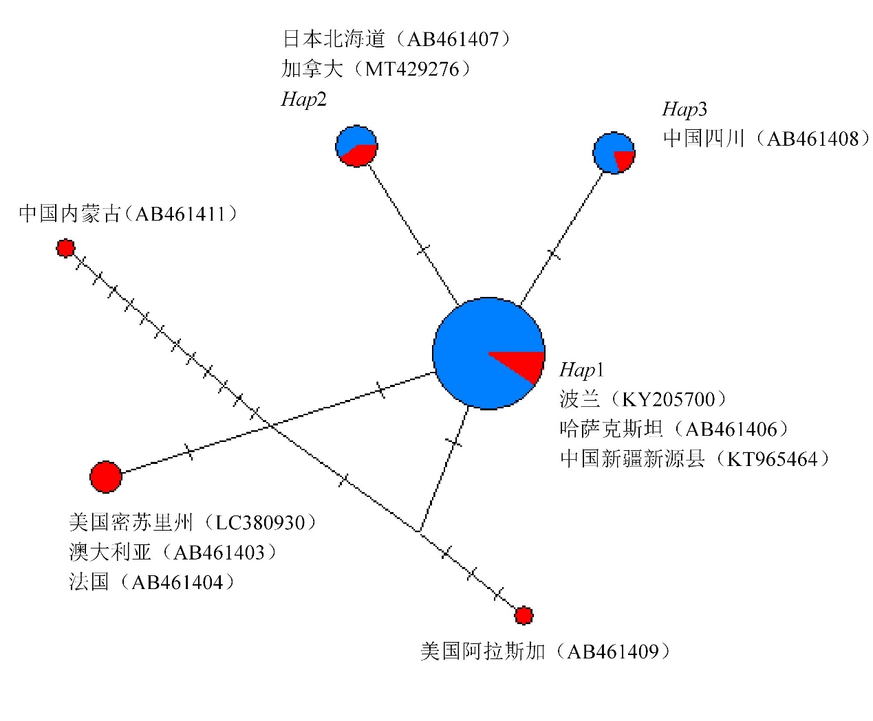 Umhang G, Bastid V, Avcioglu H, et al. Unravelling the genetic diversity and relatedness of Echinococcus multilocularis isolates in Eurasia using the EmsB microsatellite nuclear marker[J]. Infect Genet Evol, 2021,92:104863.